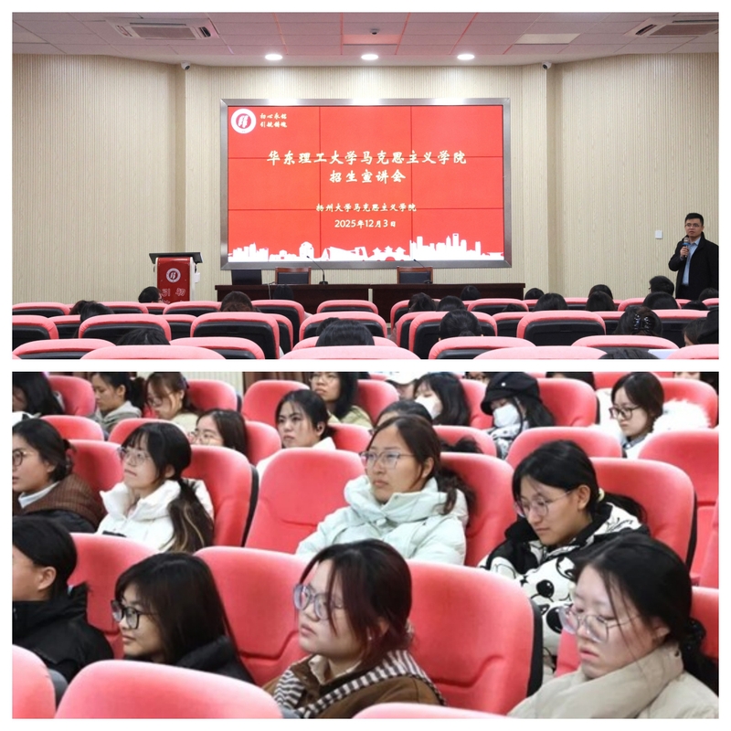 宣讲会上,毛安然围绕必赢56net官网入口哲学一级学科硕士点及马克思主义理论硕博士招生核心内容展开讲解,从学科发展历程、研究方向、师资配置、培养模式等多个维度,结合上海区位优势与实习资源,系统介绍了报考华理马院的核心优势,并就同学们在择校、专业选择方面的主要困惑进行了精准解答。杨倩进一步介绍了学院的优势特色,重点说明了学院以科研资金扶持、实践平台建设为主要内容的“青梅”学生培养支撑体系。黄时进介绍了马克思主义理论博士点的建设情况与发展前景。刘芳、马娜、杨建伟分别从专业就业价值、校园生活体验、科研备考规划等角度分享实用信息,为同学们提供全方位的升学参考。